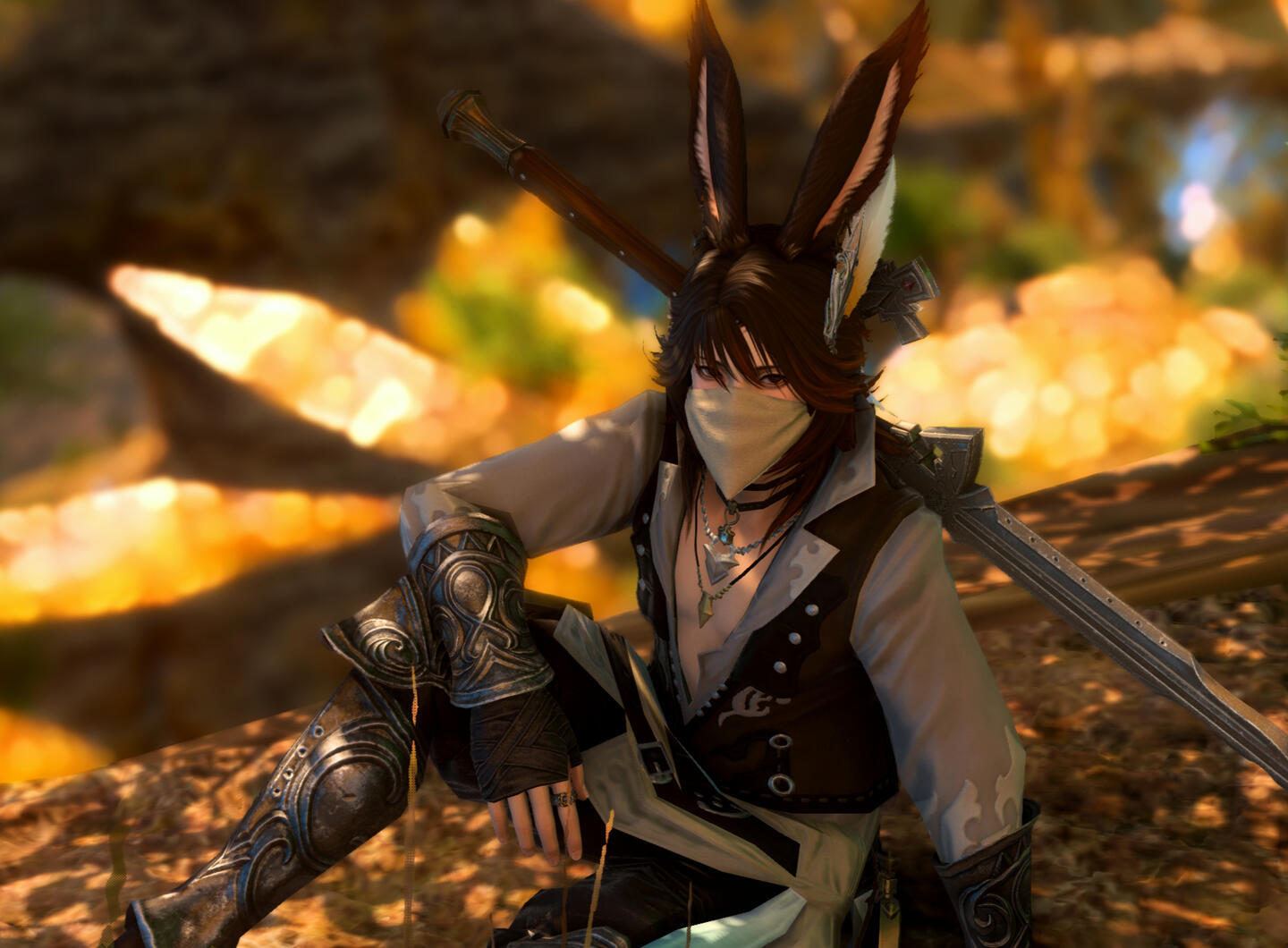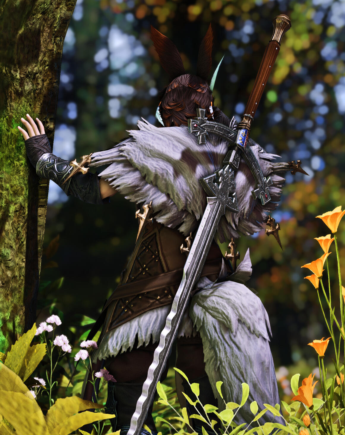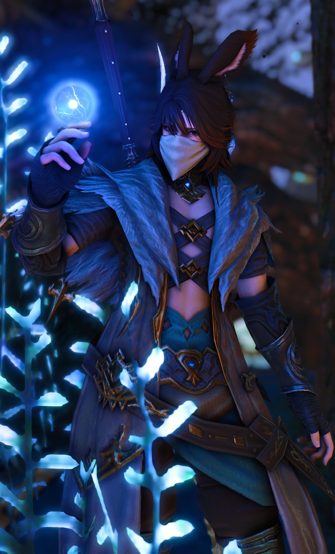 Based in the remains of the West Shroud, Rennyn works as an adventurer, hunter, and scavenger. He completes hunt bills, recovers artifacts, and other arduous tasks. The viera has even garnered a semi-amicable business relationship with some would-be scholars or collectors thanks to his unique accessibility to Allagan fragments. He tends to work mostly in the lands of Mor Dhona, The Black Shroud, Coerthas, and on rare occasions, Dravania. Curiously, the viera also spends his free time scouring the areas most affected by Dalamud, searching for something hidden beneath the wreckage.Due to his ability to speak the Dalmascan language with its native vernacular, it is assumed he could have been originally from the Skatay Range like most veena. His reluctance to elaborate on his past is less to do with being secretive and more to do with the fear of the unknown, as discussing recent historical events showcases that spots of the viera's memory have been erased by an unknown cause. His vieran biology prevents him from using most magicks without risk of going into a frenzy, which is the reason for his choice of weapon being the greatsword.His duplicitous demeanor can often sway between mirthful, mischievous, and downright cruel. He can and will abuse loopholes if given the chance or if it makes situations convenient. Rennyn is a hypocrite who revels in being trusted, yet is reluctant to give back the same courtesy. He grows notably anxious, and even sickly, the further he strays from the areas around The Black Shroud and Coerthas, though the reason seems to escape him whenever brought up.