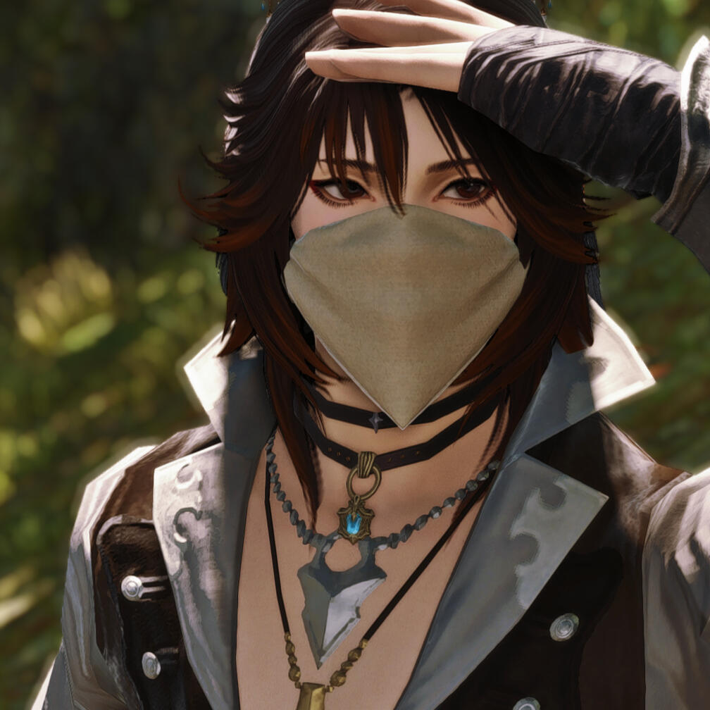 Distant. with the bottom half of his face consistently covered, it can be difficult to tell what mood he's in. look for other tells such as his eyes, posture, etc. for that sort of thing. his style is always practical, modest, in sense that it looks like he could fix his own clothes and not in a good way. notably, he rarely shows skin, and tries to keep most people at arm's length.