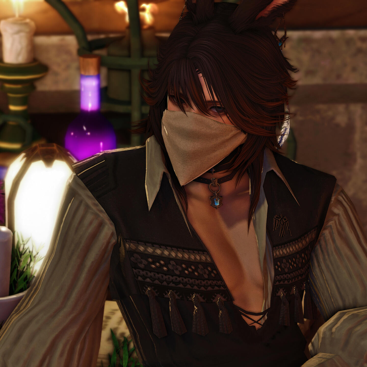 A shroud-based viera by nature, not by choice. He roams the through the woodlands of the Black Shroud and the tundras of Coerthas, searching for something, to an almost aimless extent.Affable, yet Irreverent; Hypocritical, Distrusting. He'll do the work, strike a bargain, and be polite about it too if it means some gil lining his pocket.